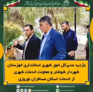 به گزارش پایگاه خبری قلم کارون، ۱۲ فروردین ۱۴۰۴، در ایام نوروز، مهندس مهراب فلسفیزاده، مدیرکل امور شهری و شوراهای استانداری خوزستان، به همراه شهردار شوشتر و معاونت خدمات شهری از محلهای اسکان مسافران نوروزی، پارکها، بوستانها و سواحل رودخانه شطیط بازدید کردند.