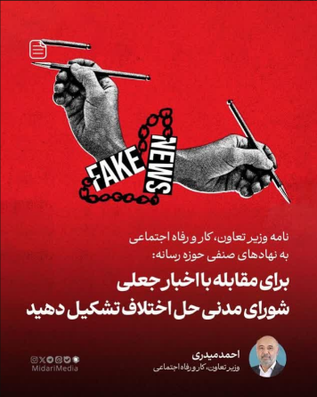 نامه وزیر تعاون، کار و رفاه اجتماعی به نهادهای صنفی حوزه رسانه:برای مقابله با اخبار جعلی شورای مدنی حل اختلاف تشکیل دهید
